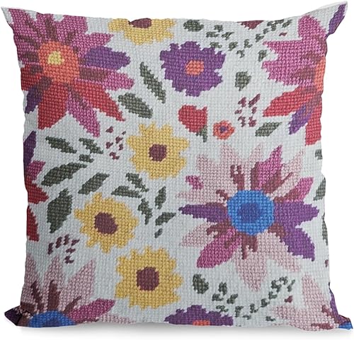 DELICATELA Kit de canevas pour broderie de coussin | Canevas imprimé de 40 cm x 40 cm | Comprend de la laine et une aiguille pour tapisserie | Motif Joie