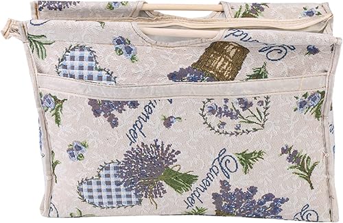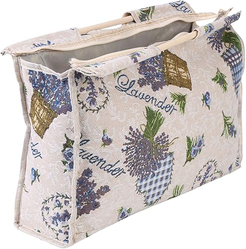 1pc Tricot Sac Exquis Pratique Sac Tissé Sac de Rangement avec Poignée en Bois pour Stockage Organisateur Fil à Tricoter Couture Outils(Fleur rouge)