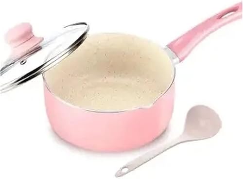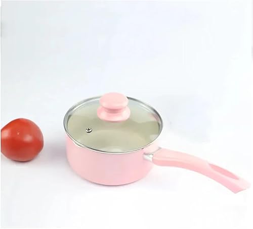 BDXMKS Marmite Marmite à Soupe Rose 16 cm/18 cm, Casserole à Lait, poêle de Cuisson antiadhésive Portable, ustensiles de Cuisine for cuisinière à gaz et à Induction(18cm)