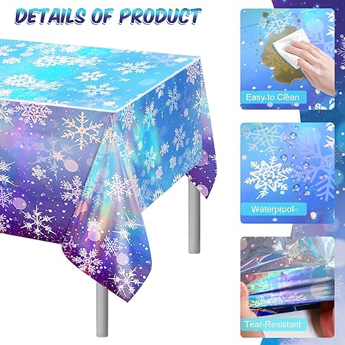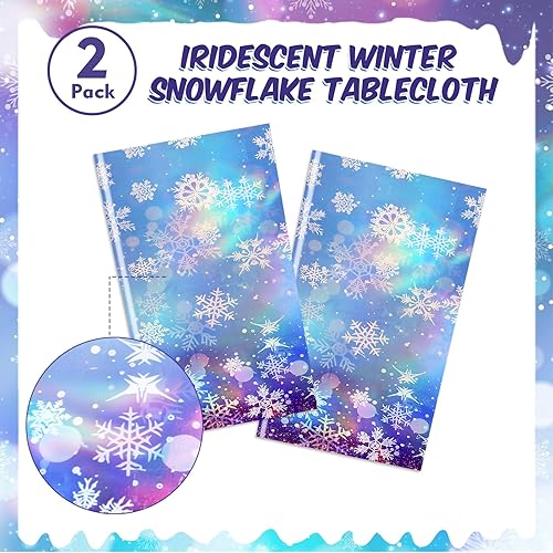 PHOGARY Nappe Reine des Neiges irisée Nappe de Noël Flocon de Neige Frozen Décorations de fête Nappe holographique Nappes en Plastique, 2 PCS