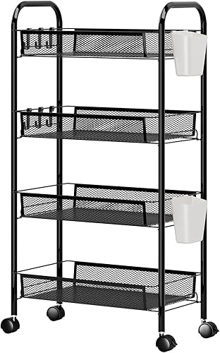kiskick Panier à fruits et légumes pour cuisine, paniers à fruits et légumes, paniers empilables en fil métallique pour fruits, légumes, collations, paniers de cuisine, bocaux, conteneurs, noir, 4