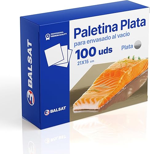 BALSAT Palette argentée pour emballage sous vide, idéale pour mettre dans des sacs sous vide, palette pour saucisson et saumon, carton pour emballer la charcuterie, saumon - Paquet de 100 unités (25 x