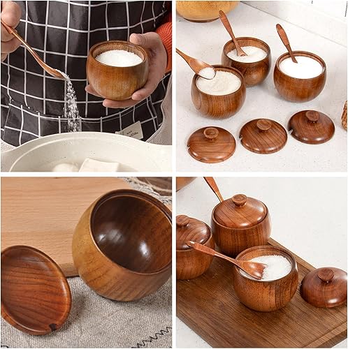 Boîte à Sel En Bois, Récipient Épices Assaisonnement, Pot à Épices Avec Cuillère, Boîte de Stockage Pour Cuisine