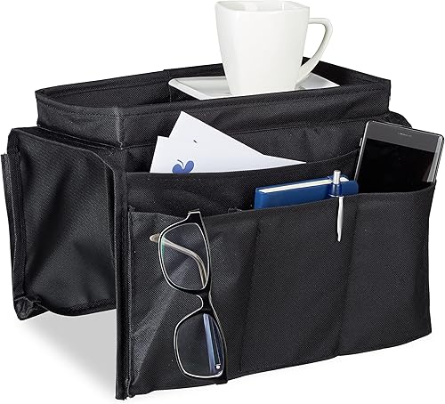 Relaxdays Organiseur canapé fauteuil pliable 6 poches de rangement accoudoir support HxlxP: 22x18x32 cm, noir, 22 x 18 x 32 cm