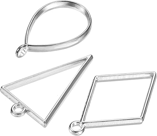 M METERXITY 1 Ensemble/30pcs Ouvert Lunettes pour Résine - Creux Cadres Alliage gouttes Forme, Triangle, Rhombe, Appliquer à DIY Artisanat Pendentifs Pressé Fleurs (Argent Ton)
