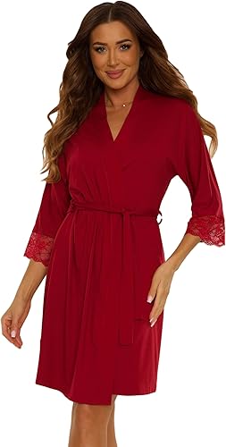 Selente Sweet Dreams Élégant peignoir (fabriqué en UE) en viscose fine avec dentelle
