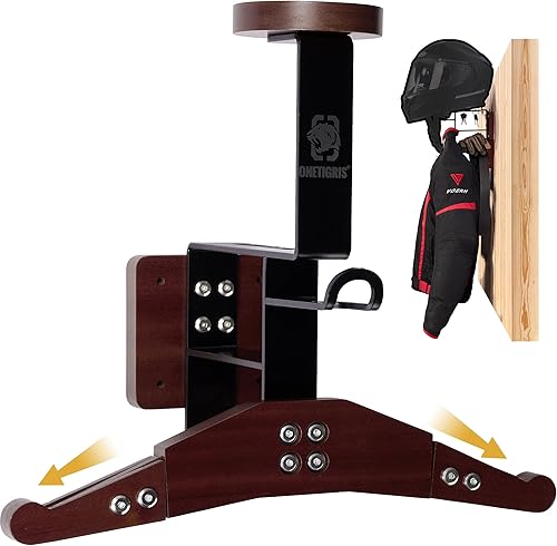 OneTigris Support Casque Moto Ver. 2.0 – Porte Casque Mural 80 kg de Charge, Support Solide avec Double Crochets & Porte‑Lunettes, Réglable, pour Casques de Moto, Gilets Airsoft, Vêtements de Moto