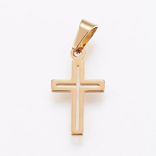 Clotiry Lot de 10 pendentifs en forme de croix religieuse creuse en acier inoxydable doré pour la fabrication de bijoux, bracelets, colliers, boucles d'oreilles, Métal non précieux