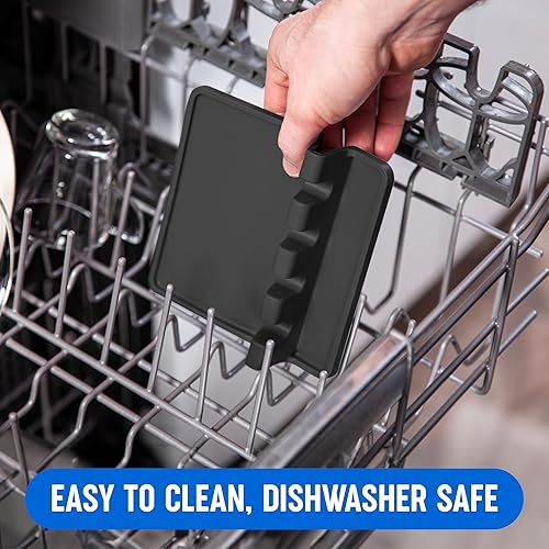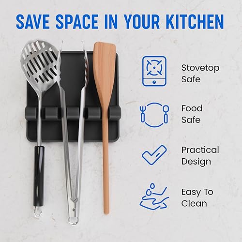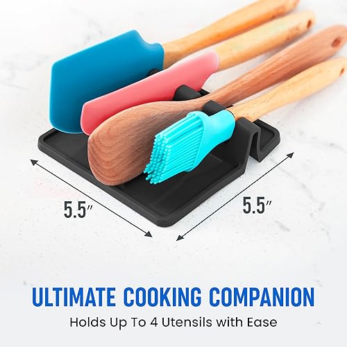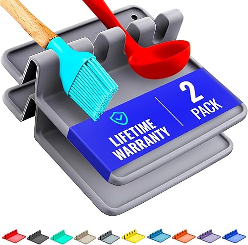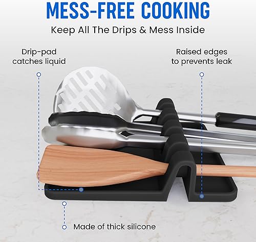Repose Cuillère Cuisine, Pack de 2 – Pose Cuillère Cuisine avec Égouttoir – Porte Ustensiles Cuisine Thermorésistant, sans BPA – Ustensiles pour Poser les Spatules, les Pinces et les Louches (Noir)