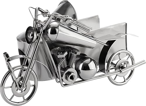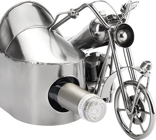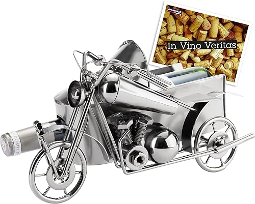 BRUBAKER - Porte-Bouteille de vin - Moto Side-Car - Sculpture en Métal - Carte de voeux INCL. - Idée Cadeau Originale