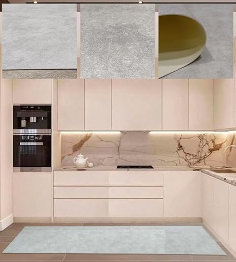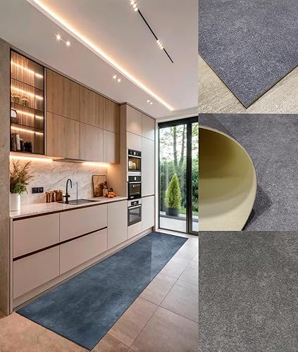 Tadi & Imperio1979 Tapis en Vinyle Gris - Effet Ciment - Lisse - pour Cuisine - pour Couloir / 50 x 180 cm/Gris