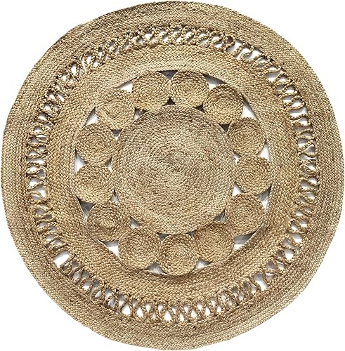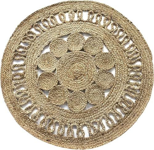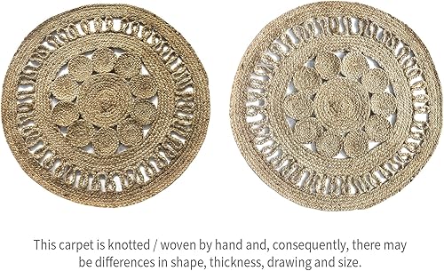 HAMID - Tapis Jute Alhambra Nazarí Rond Couleur Naturelle, Tapis 100% Fibre Naturelle de Jute, Design Tressé, Fait Main, Tapis pour Décoration, Salon, Chambre, (150x150cm)