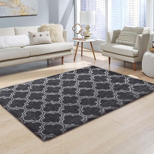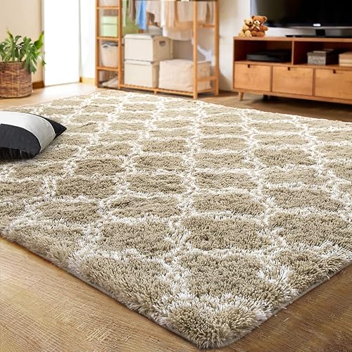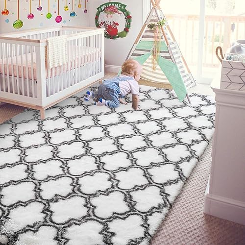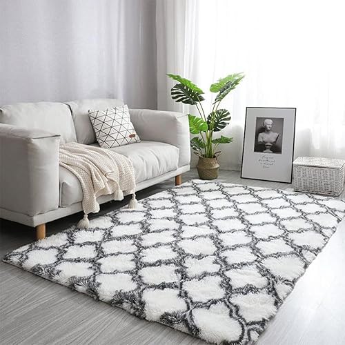 N / A Tapis Chambre Shaggy Tapis pour Salon Tapis Antidérapant Chambre Soft Tapis à Poils Longs Moelleux Tapis Rectangulaire Luxe Confortable pour Salon Chambre Tapis de Plancher(Blanc, 120 * 160cm)