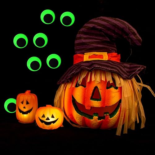 Lezevn Lot de 6 yeux mobiles autocollants ronds phosphorescents pour loisirs créatifs, cadeaux, souvenirs (50 mm)