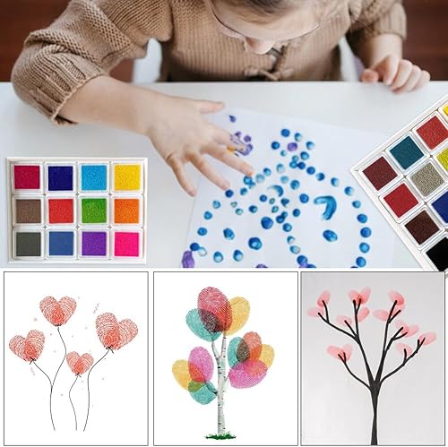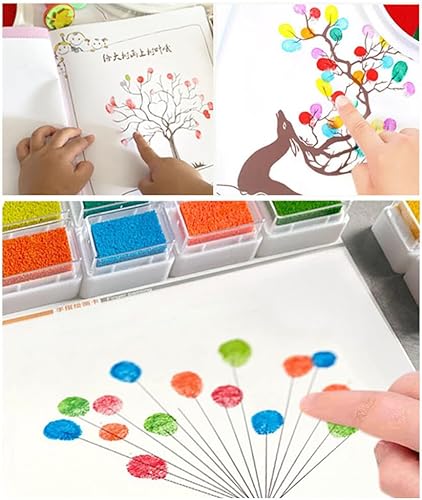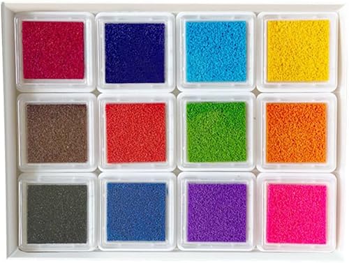 12 Couleurs Tampon Encreur, Peinture au Doigt pour Enfants, Tampon Encreur Lavable, Coussins Encreurs Outils de Dessin pour Papier, Artisanat, Peinture en Tissu, Bricolage et Cadeau d'anniversaire