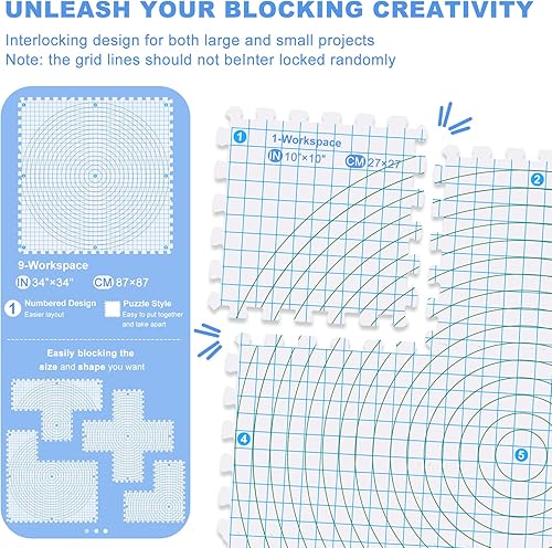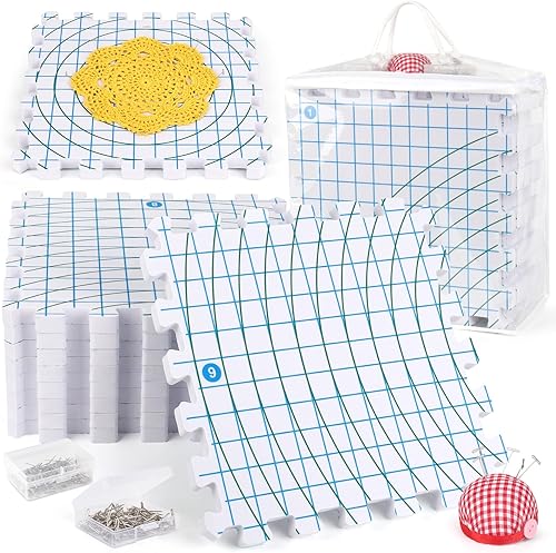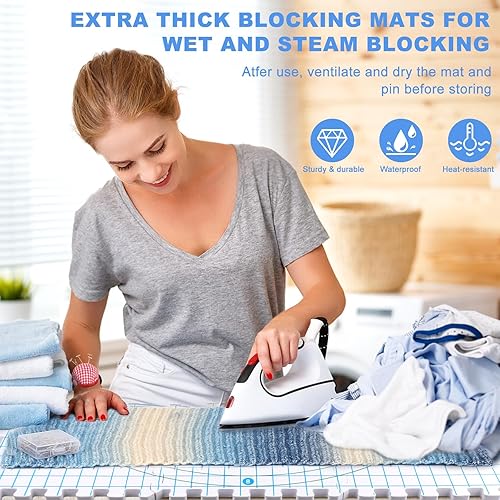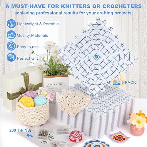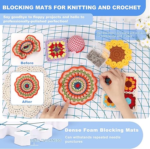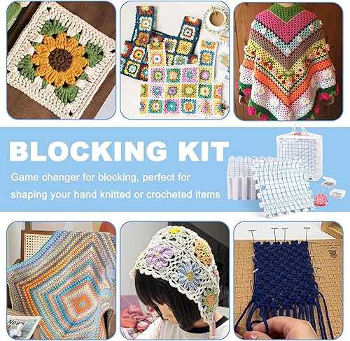 Aeelike Tapis de Blocage Tricot avec 200 Aiguilles en T et Coussin à Aiguilles, Plaque de Blocage avec Grille, Kit de Blocage Tricot pour Granny Square Tension et Crochet Travaux d'Aiguille Lace