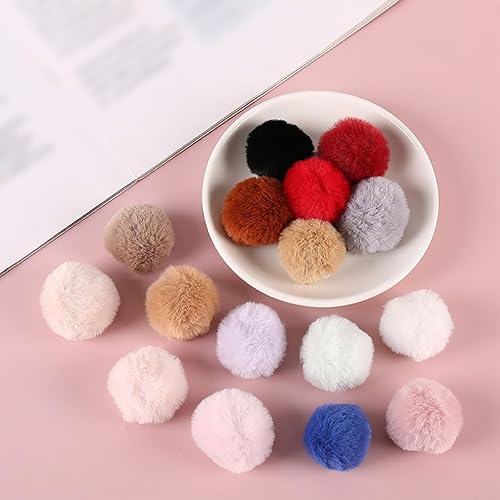 Lot de 30 Petites Boules en Fausse Fourrure de 3 cm pour travaux manuels, Jolis Pompons Duveteux et décoratifs de vêtements avec Boucle élastique Multicolore