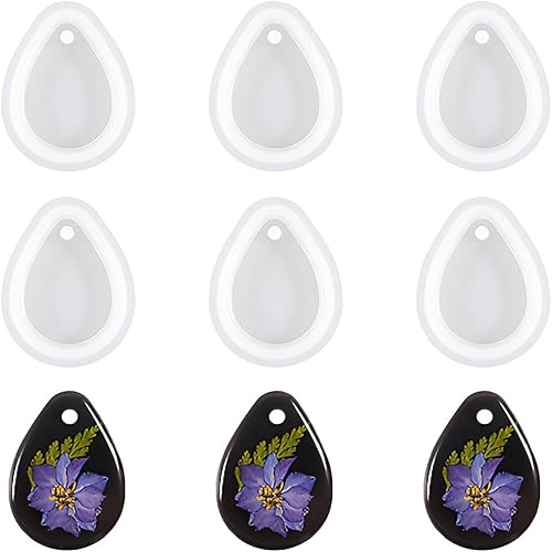 Nifocc Lot de 6 moules ovales en résine époxy - En forme de goutte d'eau - Porte-clés - En silicone - Avec trous - Pour bricolage