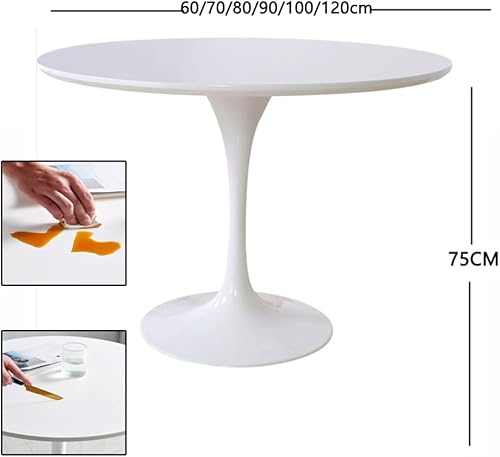 JHAISMAO Blanc MDF Laqué Table à Manger Rond Table De Cuisine Tulipe Piédestal pour La Vie à La Maison Salle à Manger Cuisine Restaurant(Size:60cm)