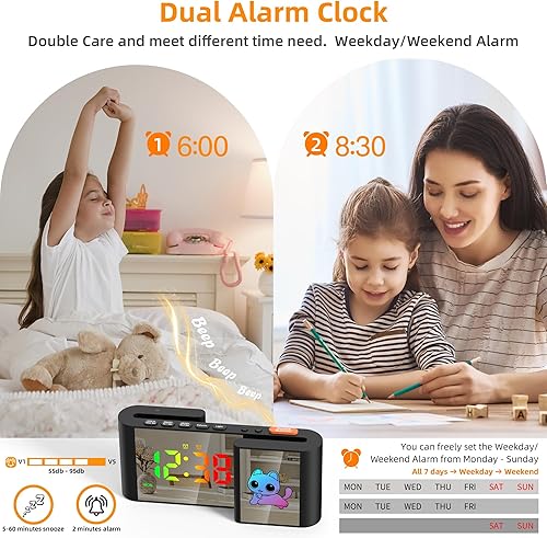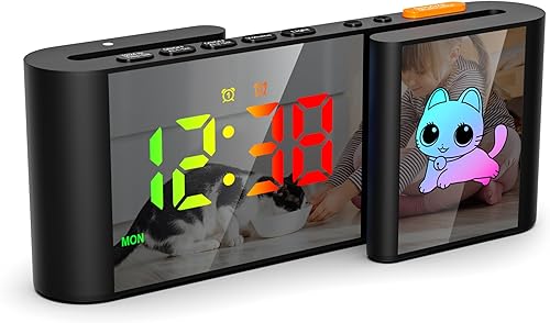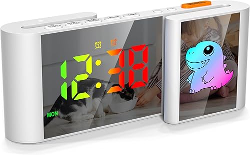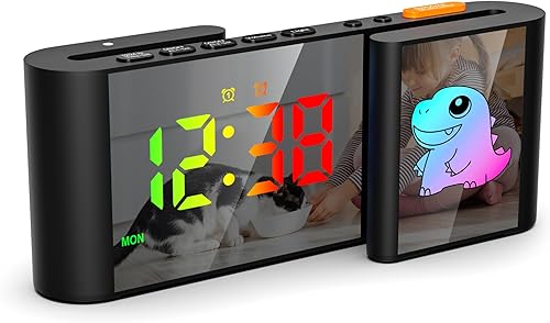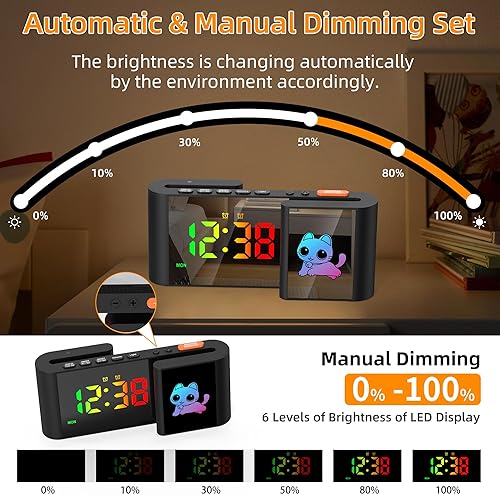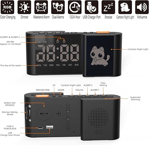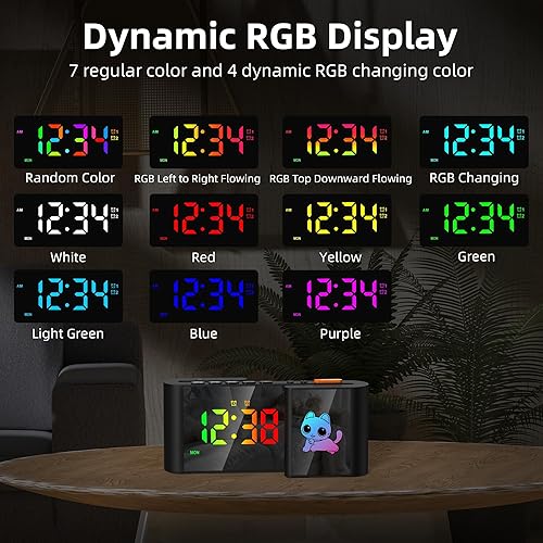 Euakee Réveil Numérique, Horloge Digitale avec Dinosaure Mignon, Horloge LED de Type S, 11 Couleurs Cartoon, Variateur, Volume, Snooze, Veilleuse pour Table de Nuit, Chambre, Room Décor(Noir)