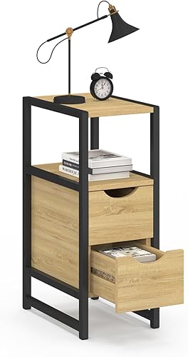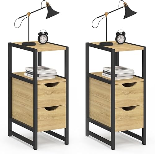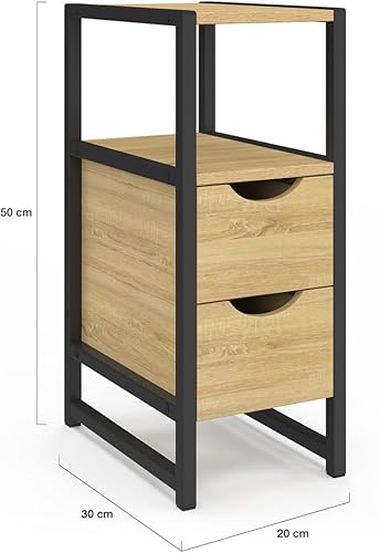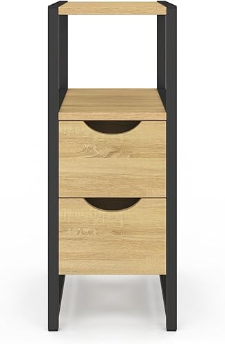 IDMarket - Lot de 2 Tables de Chevet Detroit 2 tiroirs et 1 Niche Bois et métal Noir Design Industriel