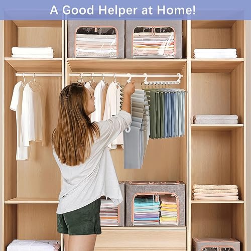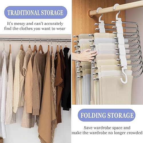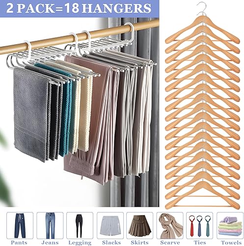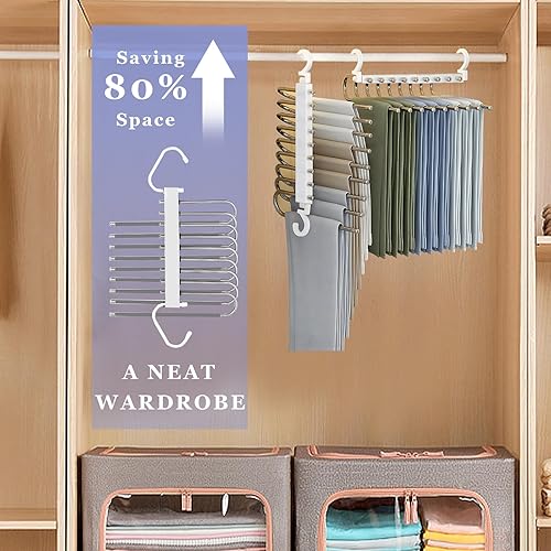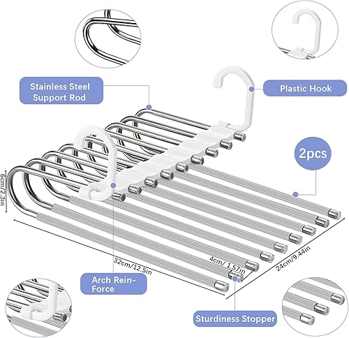 MULEVIP 9 en 1 Cintre Pantalon,2PCS Cintre Pantalons de Armoire Gain de Place,Cintres Pantalons,Ceintre pour Pantalons,Cintres Porte-Pantalons pour Pantalons,Écharpes,Jeans,Vêtements,Serviettes