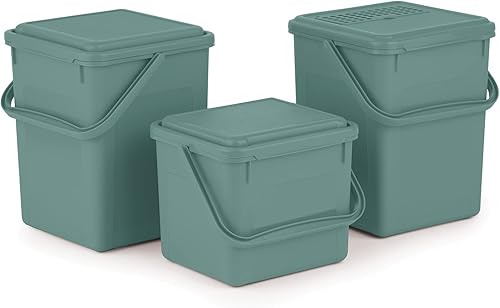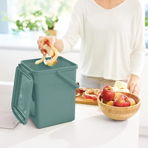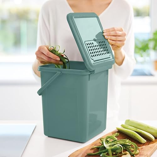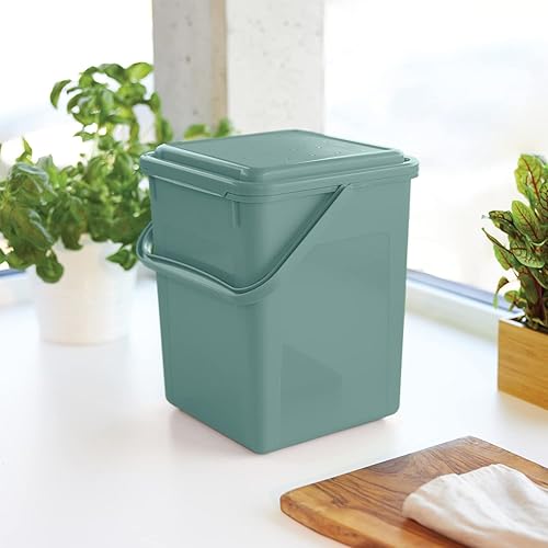 Rotho Seau à compost bio 9 l avec filtre à charbon actif dans le couvercle, plastique (PP) sans BPA, vert foncé, 9 l (23x22,5x27,5cm) 1779905092