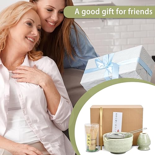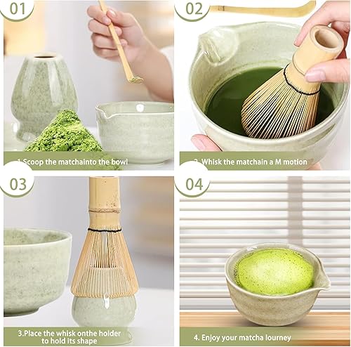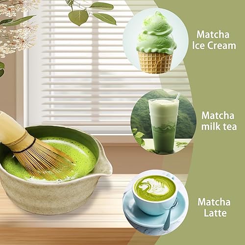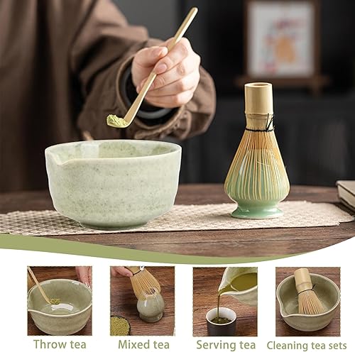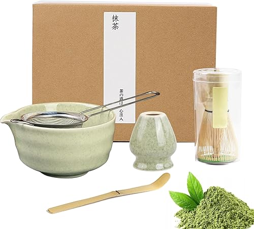 Kit Matcha Complet,Avec Bol Matcha Bec Verseur,Fouet Matcha Bambou,Cuillere Matcha,Support pour Fouet,Tamis en Acier Inoxydable,Amateurs de Matcha