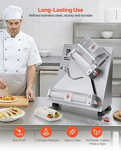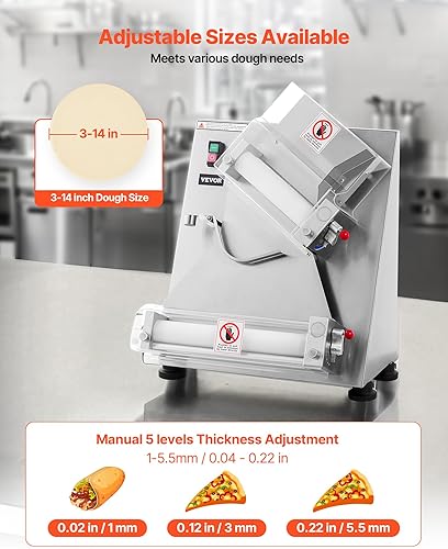 VEVOR Formeuse à pizzas, 7,6 à 35,5 cm, presse à pâte électrique commerciale 370 W, 260 feuilles par heure, laminoir à pâte à pizza automatique en acier inoxydable, épaisseur réglable, avec couvercle