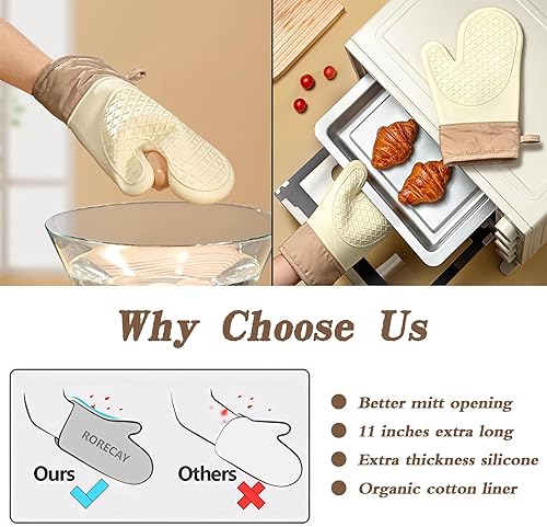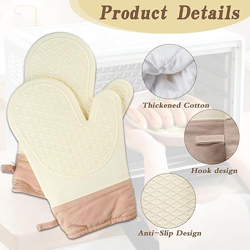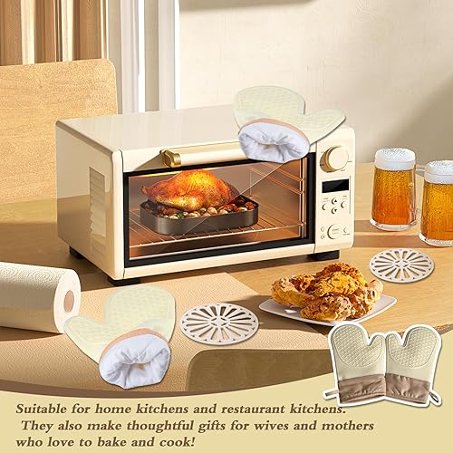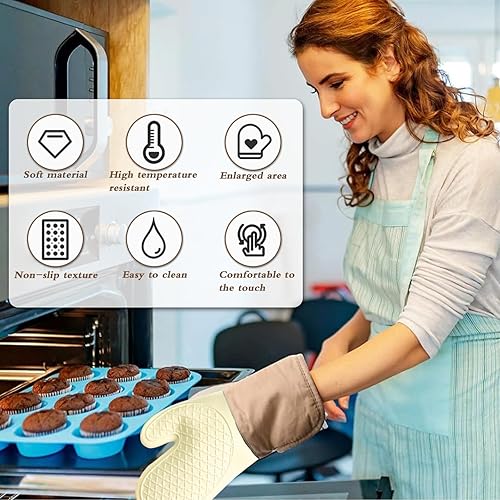 WUERKIYA Ensemble De Gants De Cuisine Et Maniques - Aide De Cuisine, 1 Paire De Gants De Cuisine, Gants De Cuisine Et 2 Maniques pour Cuisiner, Pâtisserie, Griller, Gris