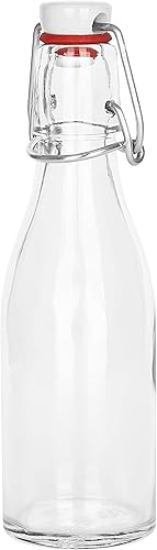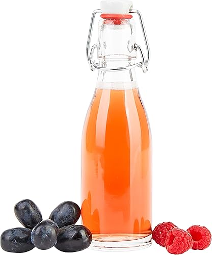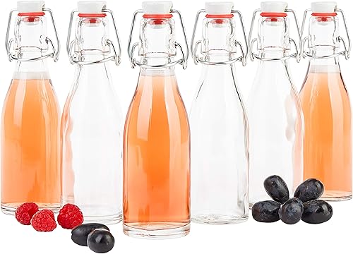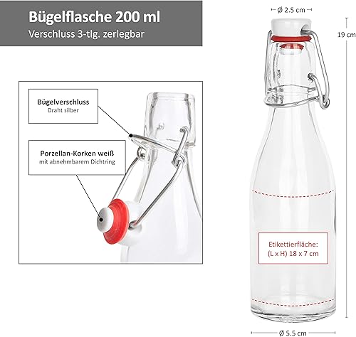 MamboCat Lot de 6 bouteilles en verre vides à remplir - 200 ml - Bouteilles à liqueur à remplir soi-même - Avec bouchon à étrier - Tête en porcelaine avec joint en caoutchouc