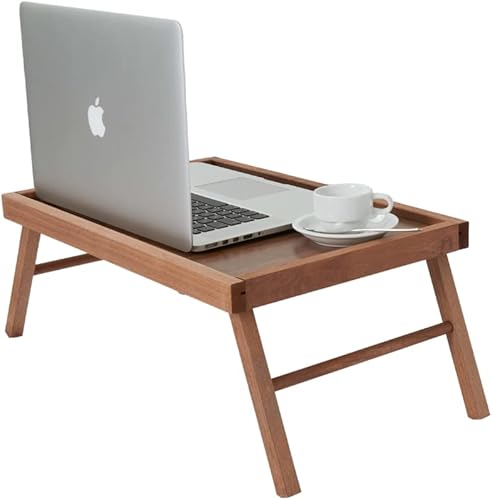 Table de lit pliante, plateau de fauteuil, couleur noix, petit déjeuner, pliable en bois de hêtre, pieds pliables, 33 x 50 x 21,5 cm