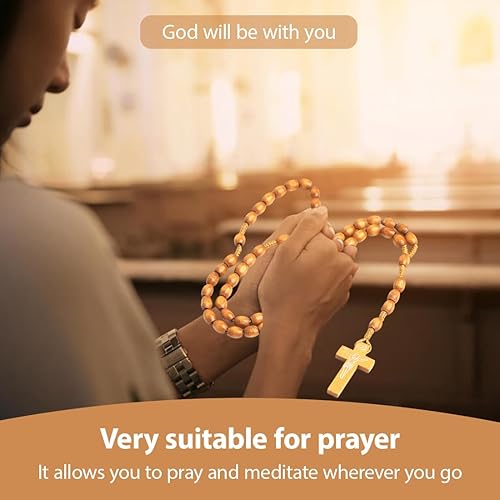 EIR Croix En Bois,Collier avec Croix Chrétienne à Suspendre au Mur,Chapelet Chretien,Décoration Cathlique pour Prier,DéCoration De Maison Religieuse,DéCoration De FêTe De PâQues