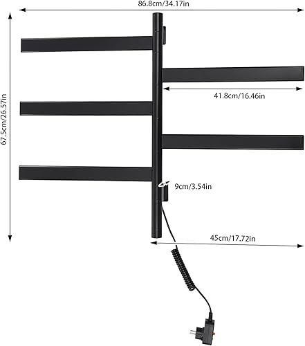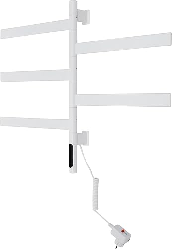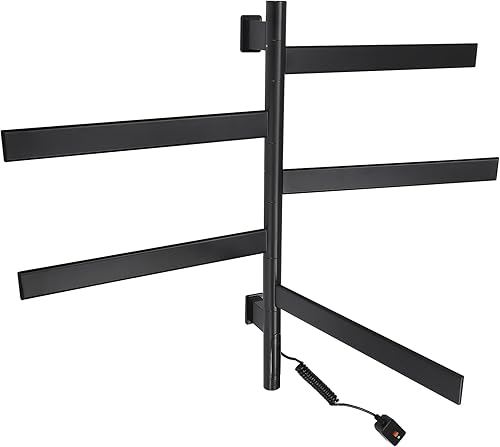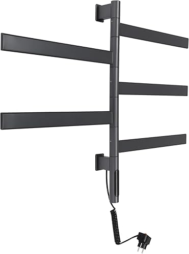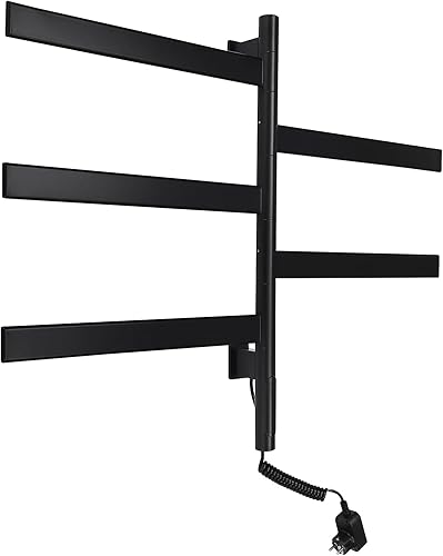 JAYEUW Sèche-serviettes électrique rotatif à 180° - Radiateur intelligent à écran tactile LED - Porte-serviettes rotatif - Sèche-serviettes de salle de bain - Montage mural (noir)