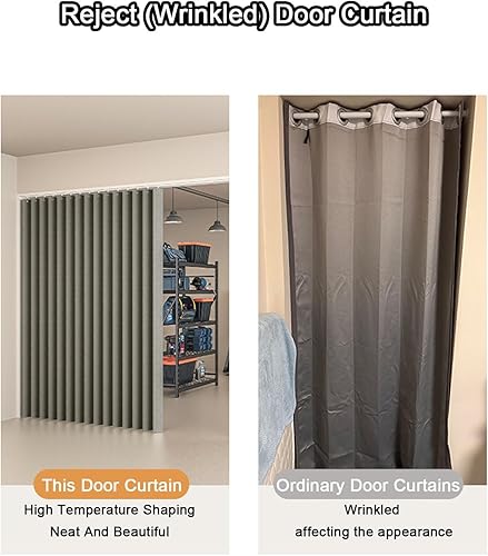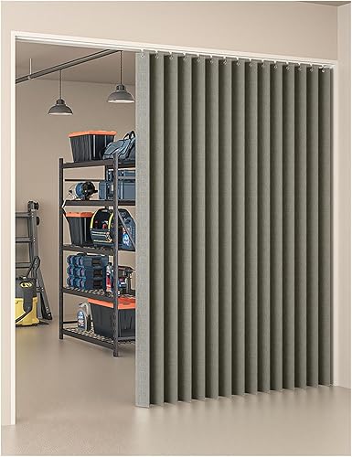 Rideau Accordéon Porte Entrée Interieur, Occultant Isolant Thermique Rideau de Porte Sans Percage avec Tringle Extensible/Bouton Magnétique Porte Accordeon pour Salon et Cuisine(B,Track W80cm/Curtain