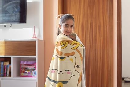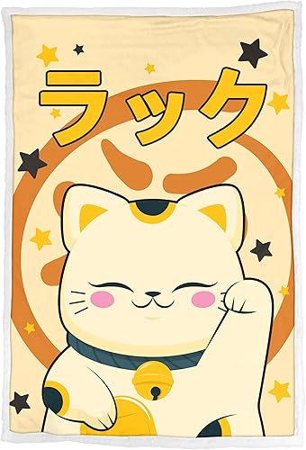 Hômadict Plaid Sherpa Maneki-Neko - 100x150cm - Licence Officielle, Blanc