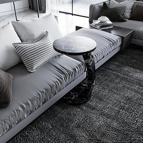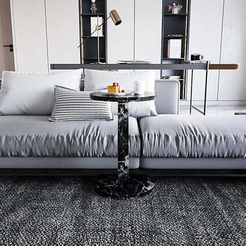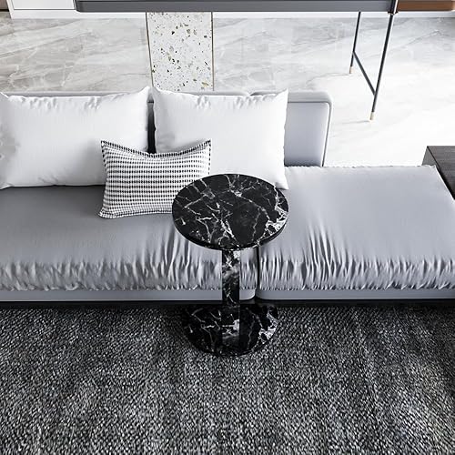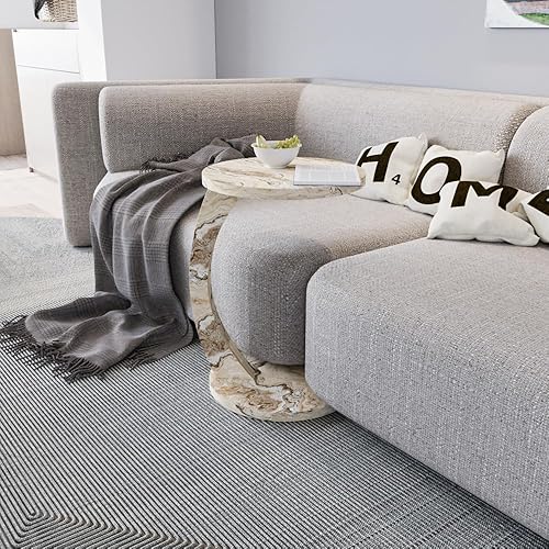 WOOVEN DESIGN Table basse en forme de C avec roulettes, table d'appoint de canapé portable, ronde, meuble élégant en bois de noyer
