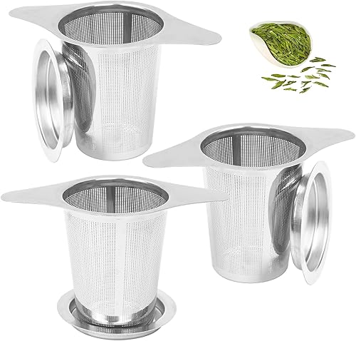 Lot de 2 filtres à thé en acier inoxydable 304 avec couvercle à large poignée, pour théières, tasses, tasses, infuseurs à thé en vrac