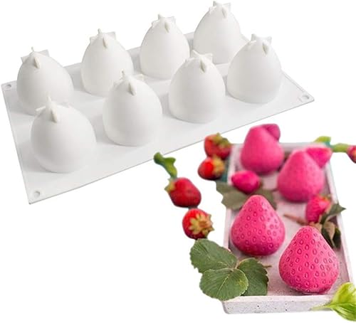 DUBENS Moule en silicone 3D pour décoration de gâteaux, gâteaux, 8 trous - En mousse de silicone - Pour pâtisserie, dessert (fraise)