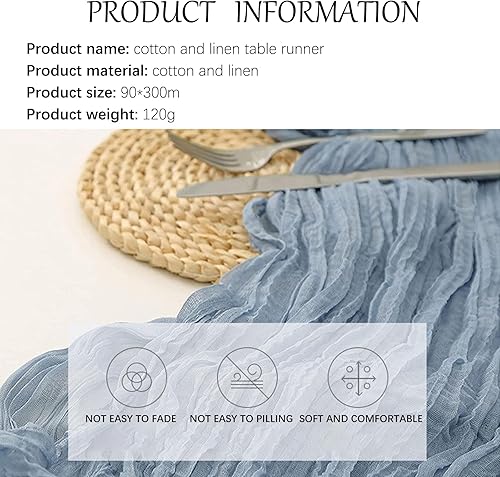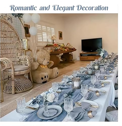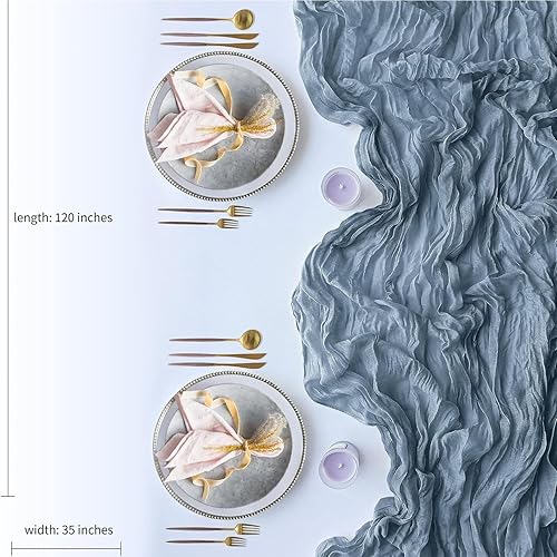 Chemin de Table en Gaze Bleu Poussiéreux 90 x 300 cm - Style Boho Rustique Translucide et Lavable - Élégant Décoration de Table pour Mariages, Anniversaires, Dîners Romantiques, Fêtes d'été, Salles de