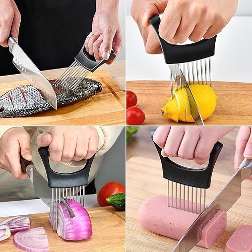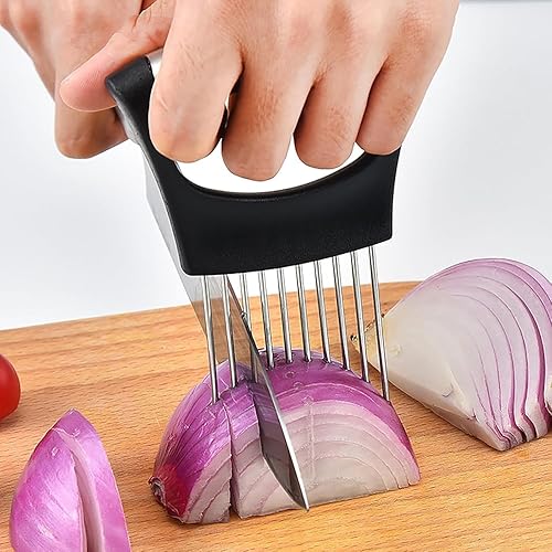 2 Pièces 2025 Support À Oignons Amélioré Pour Trancher, Porte Tranche Oignons, Porte-tranche d'oignon en acier inoxydable, Coupe-Citron, pour pommes de terre, viande, oignons, légumes