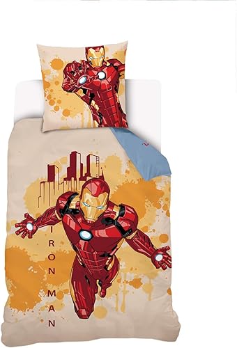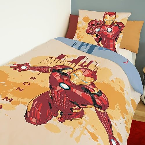 Marvel - Housse de Couette réversible Captain America et Iron Man 140x200 cm - 100% Coton - Bleu et Jaune