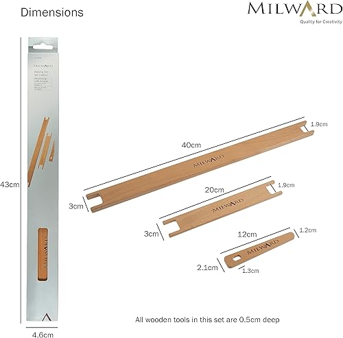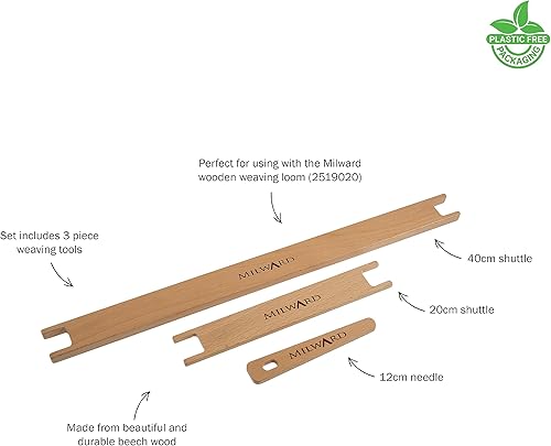 Milward Ensemble d'outils de métier à tisser – navette de 40 cm, navette de 20 cm, aiguille de 12 cm – bâton de tapisserie en bois pour bricolage, hêtre