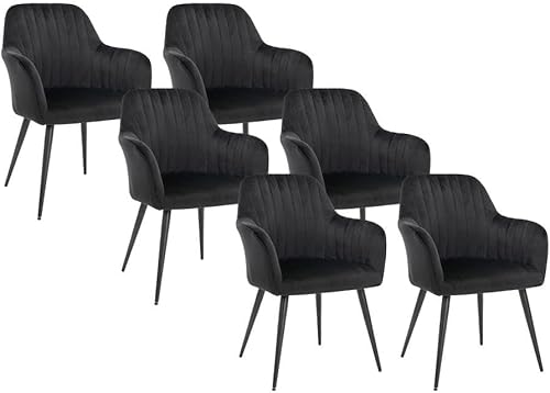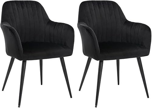 Vente-unique - Lot de 2 chaises avec accoudoirs en Velours et métal - Noir - Eleana - Salle à Manger