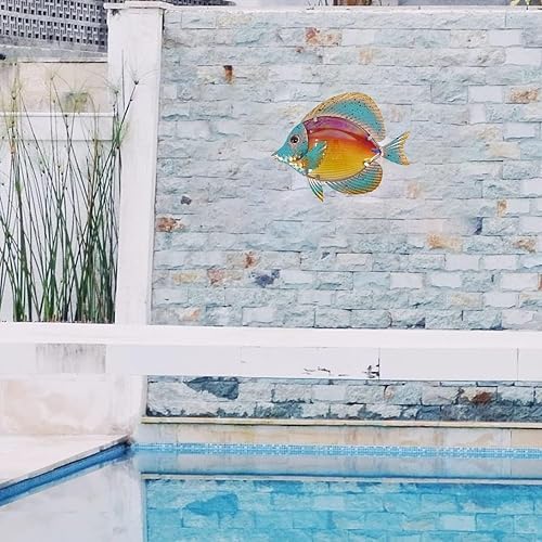 KIPPOT Poisson en Métal - Décoration Murale d'Art sur le Thème de l'Océan, Sculpture Murale en Forme de Poisson Tropical