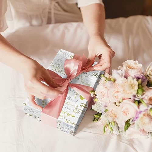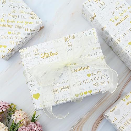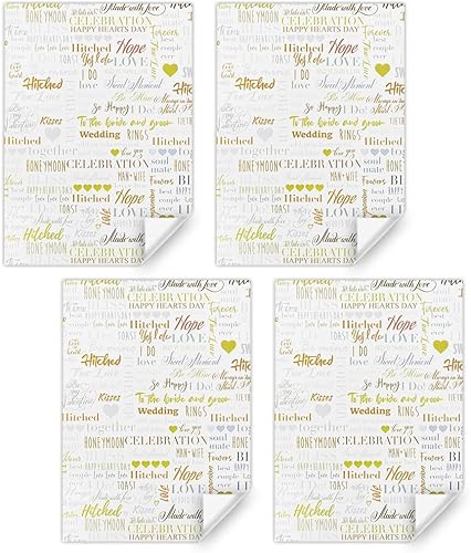 Lot de 4 feuilles de papier d'emballage cadeau en forme de cœur d'amour, lettre de mariage, or blanc,20x28inch pour la Saint-Valentin, un mariage, une fête prénuptiale, des fiançailles