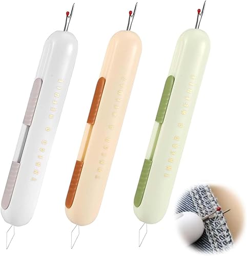 KSOIQPU Lot de 3 enfile-fils rétractables 2 en 1 pour couture et travaux manuels, Passe Fil Portable, decoud vite, amateurs de couture,enfile aiguille,Enfile-aiguille multifonctionnel