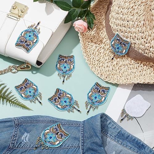 FREEBLOSS Lot de 6 écussons brodés à coudre sur vêtements en forme de chouette avec perles et paillettes pour vestes, jeans, casquettes