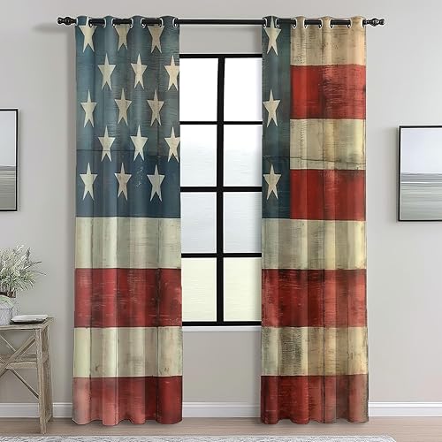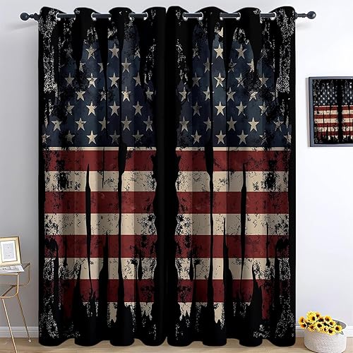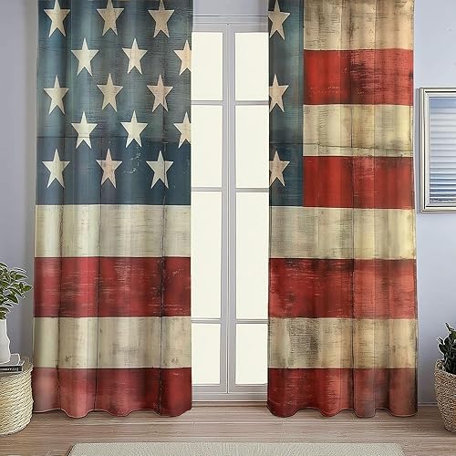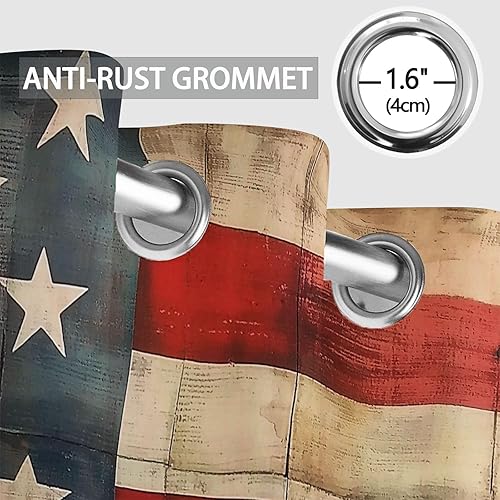 Rideau Occultant Drapeau américain Vintage minable 2 Panneaux, Rideaux à Oeillets Protecter la Confidentialité Beige Isolation Lumineux, pour Chambre L 140 x H 180 cm