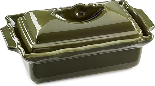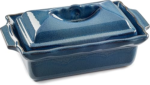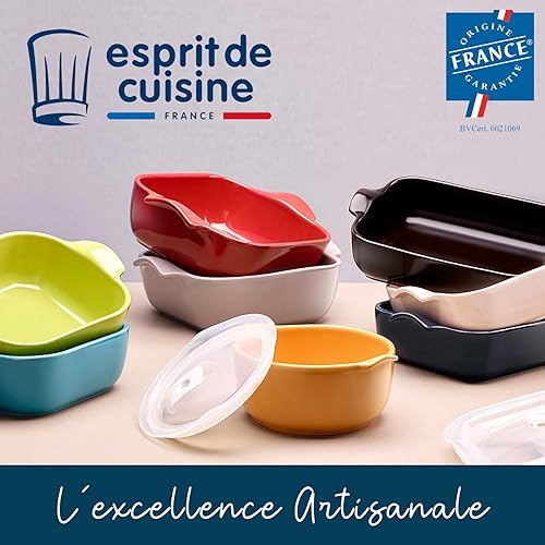 ESPRIT DE CUISINE - Plat Terrine À Couvercle En Céramique - Poignées ergonomiques - Émail Résistant Aux Rayures - Facile À Nettoyer - Made in France - 1L - 28,4x16,9x11,9cm Extérieur - Bleu Réactif